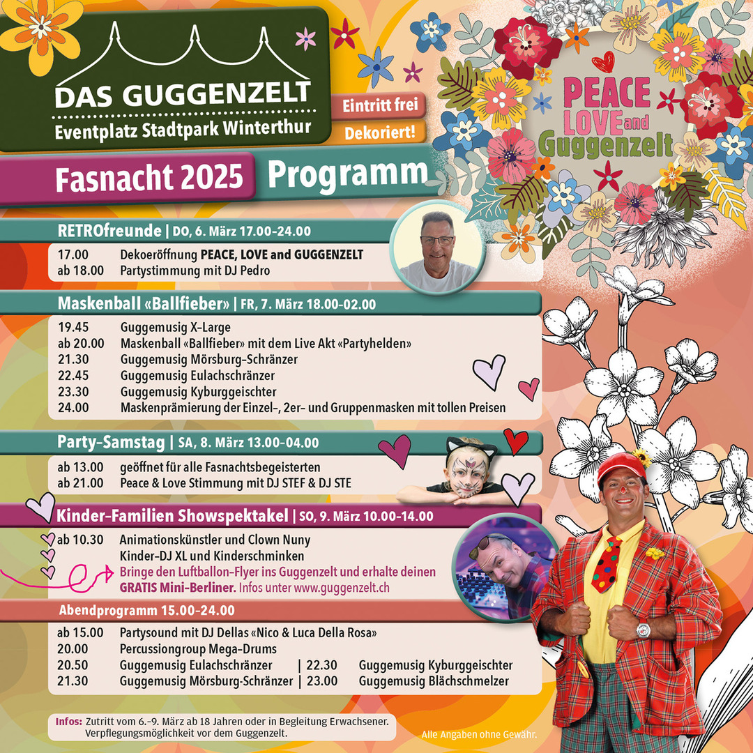 Den Anweisungen unserer Sicherheitskräfte und des Personals sind unbedingt Folge zu leisten. Die Mitarbeitenden der TEC-Security sind berechtigt, Gäste aus dem Zelt zu verweisen oder bei einem potenziellen Sicherheitsrisiko den Eintritt in das Guggenzelt zu verbieten!